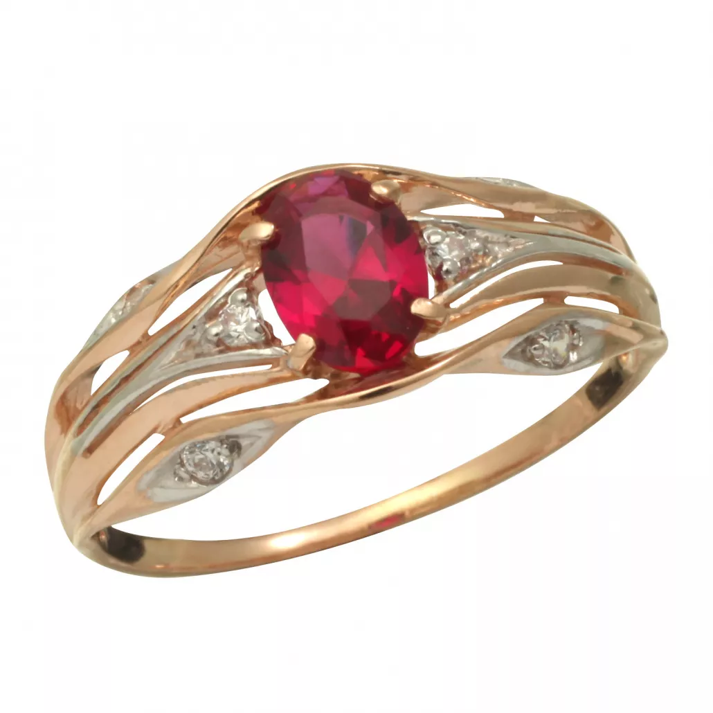 Кольцо с корундом и фианитом из золота