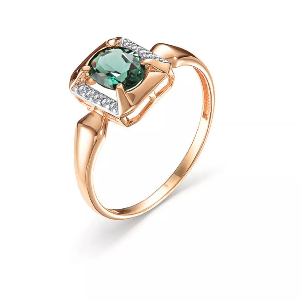 Кольцо с изумрудом и фианитом из золота Артикул: 1100304ГИ
