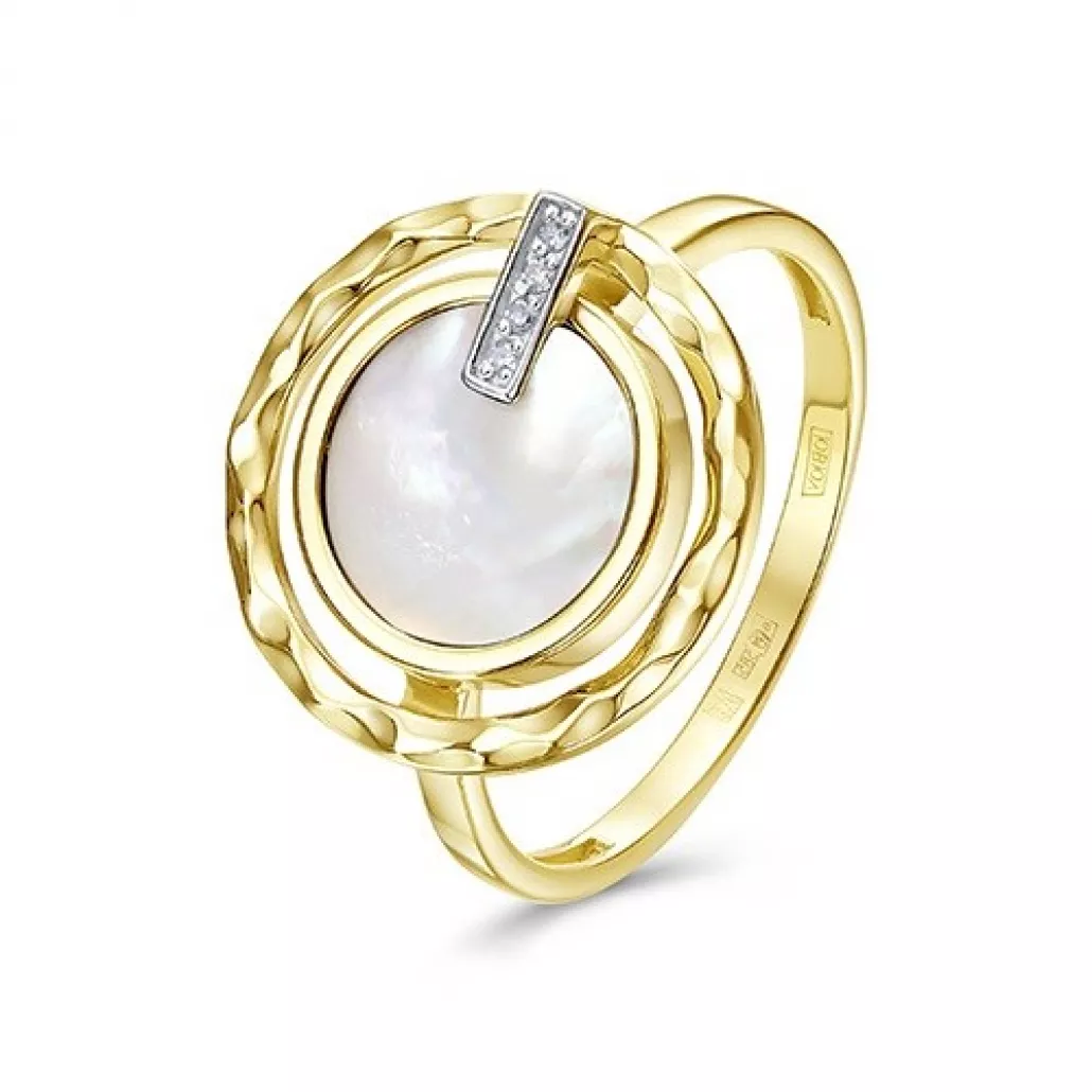 Кольцо с бриллиантами с перламутром из золота