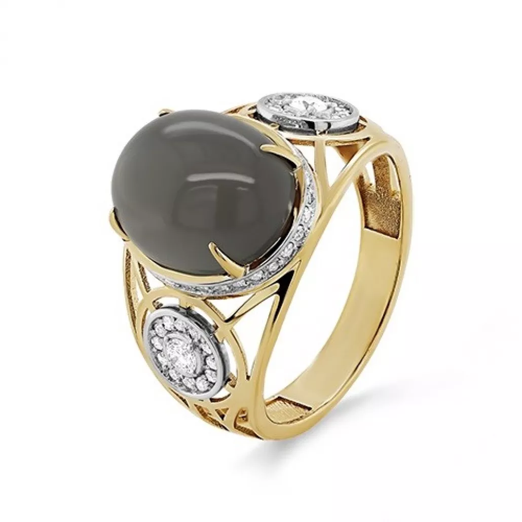 Кольцо с бриллиантами с лунным камнем из золота