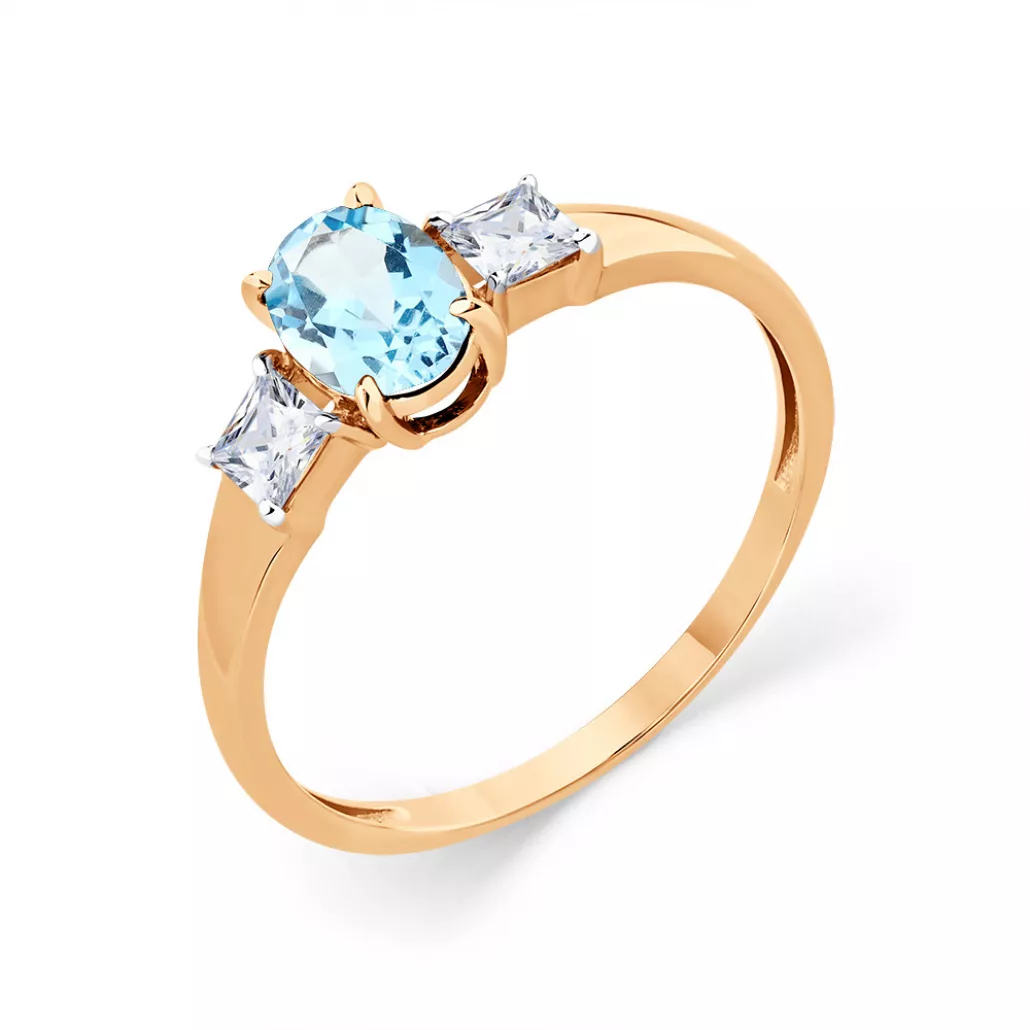 Кольцо с топазом и фианитом из золота