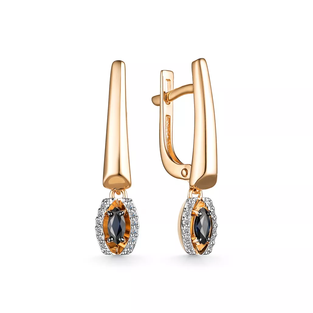 - Серьги с бриллиантами с сапфиром из золота